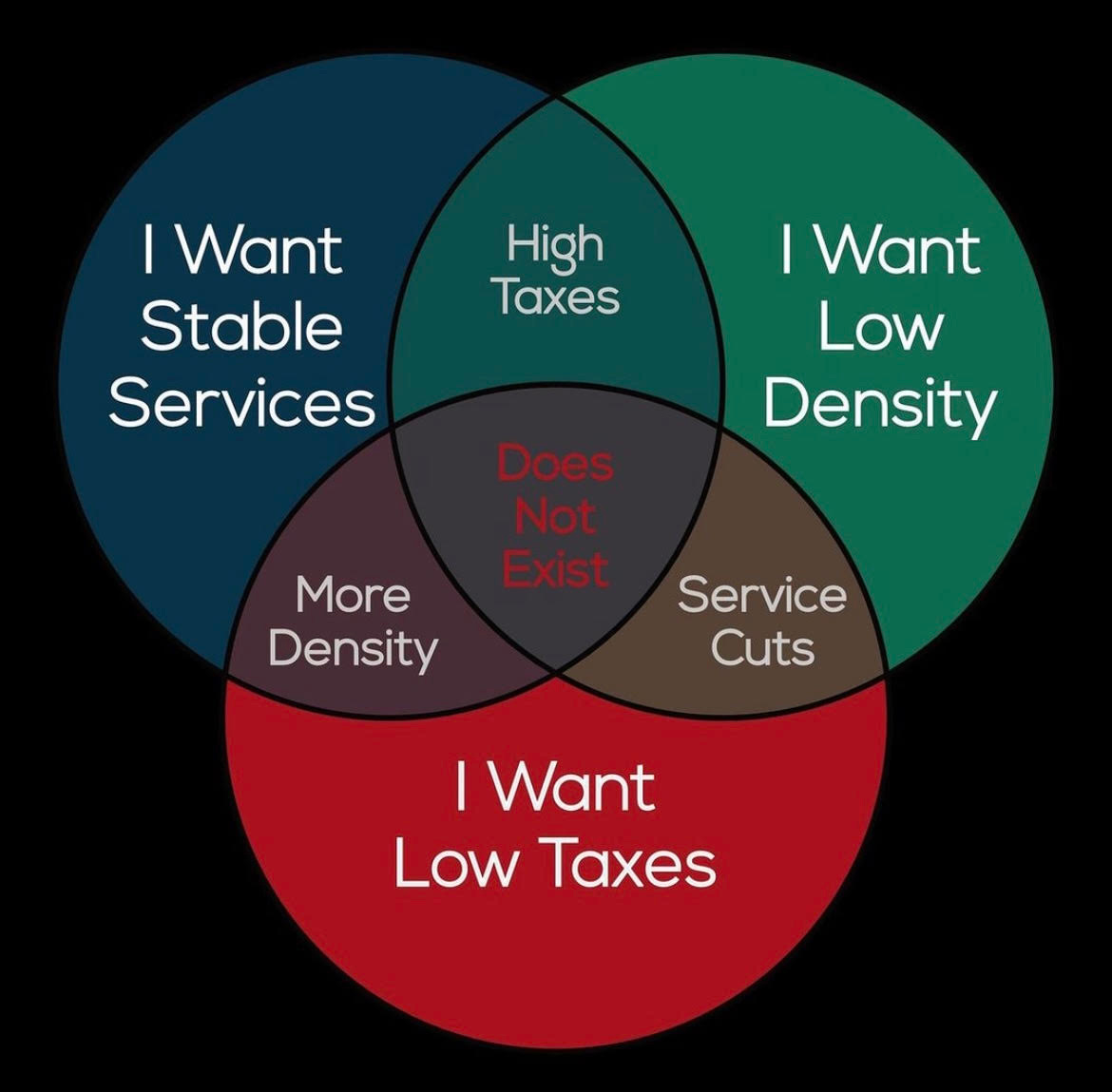 We can continue to build low-density housing and raise our taxes to pay for more bonds to rehabilitate our crumbling streets, bridges, and waterlines. Or, we can start building places that pay for themselves, so that we are not burdening everyone with higher taxes in the future.